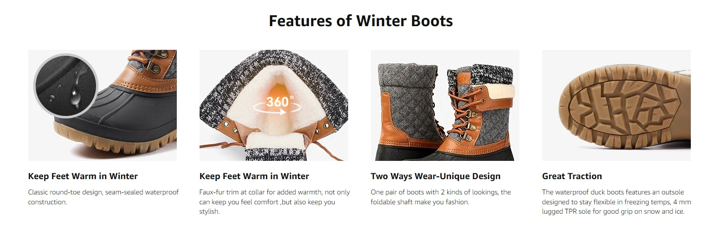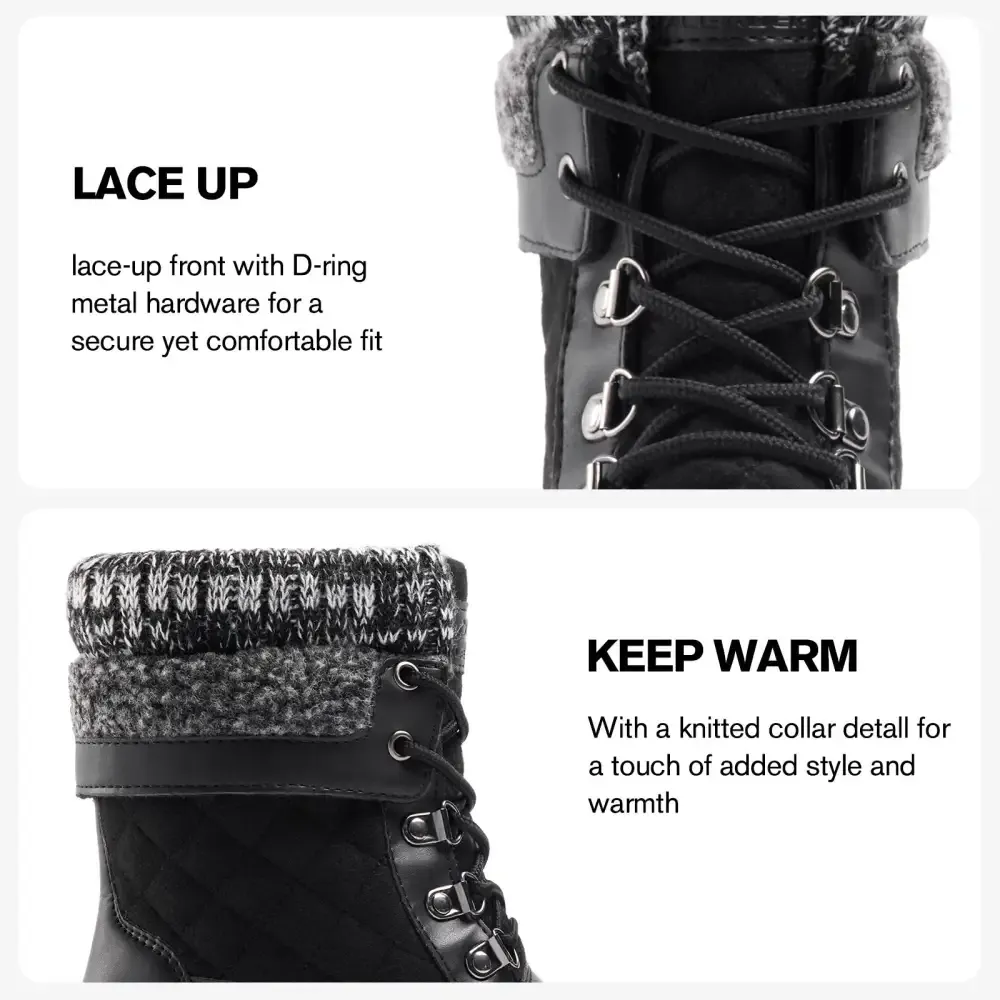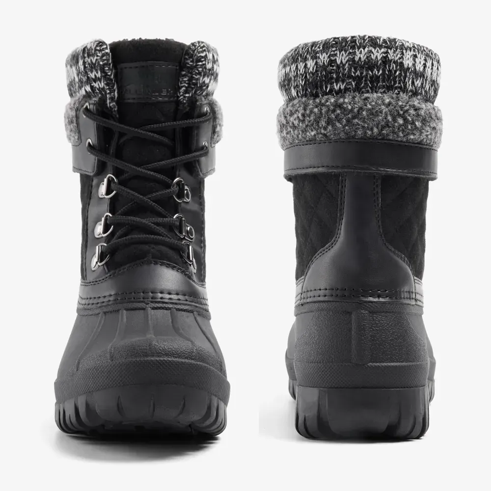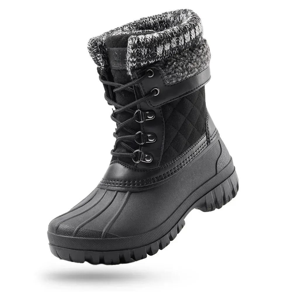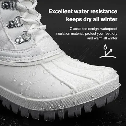 Seam-Sealed Waterproof Construction: The seam-sealed, waterproof construction, combined with waterproof material, PU combination, and microfleece lining, ensures your feet stay dry in wet winter weather.