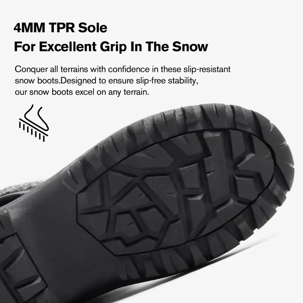 Textured EVA Outsole: The textured EVA outsole is slip-resistant, providing sure footing in icy and snowy conditions.