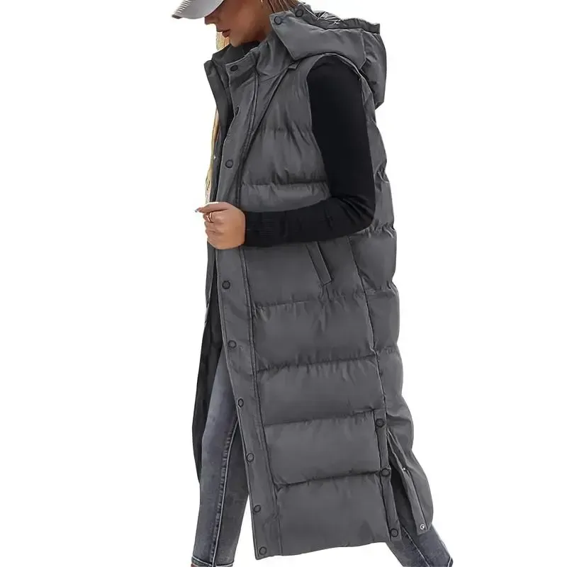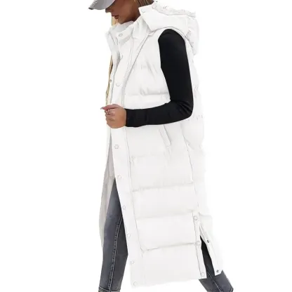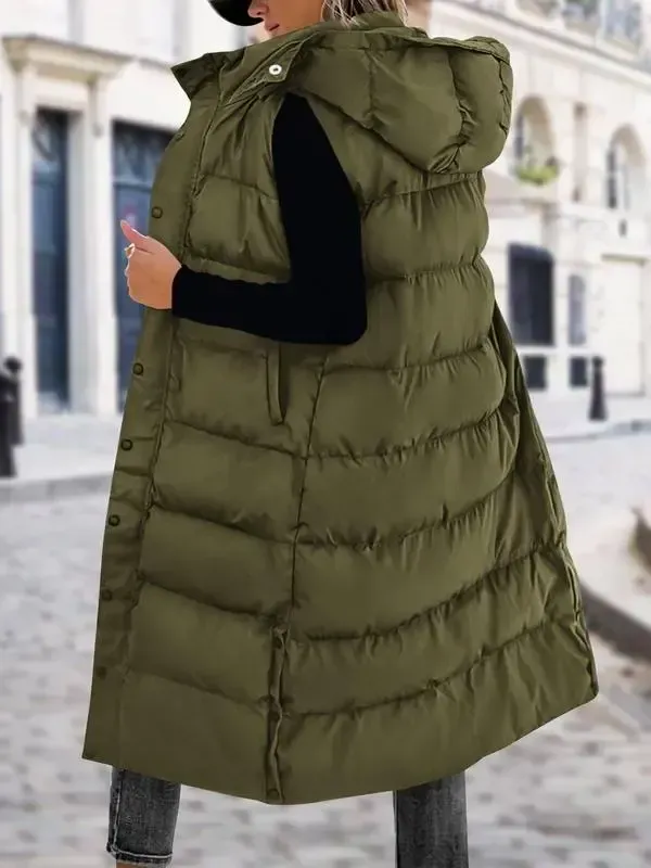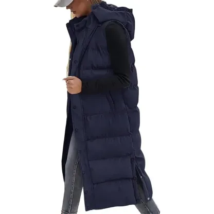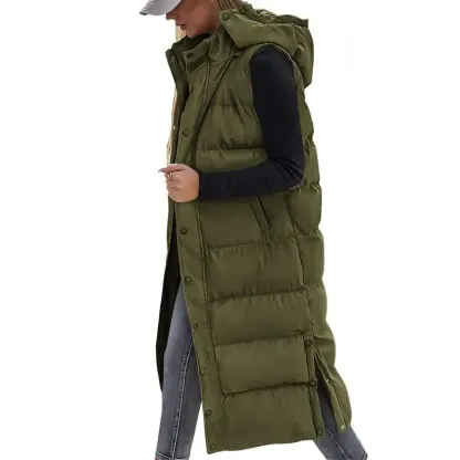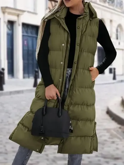 Keep warm and stylish with this women's long quilted hooded down vest, perfect for fall, winter, and spring. Fabric Type: 100% Polyester Comfortable Insulation: Quilted fill provides reliable warmth, perfect for cooler weather. Button Closure: The convenient closure allows for easy fastening and comfort. Quilted Hood: Protects from the elements while adding a touch of style to your outfit.