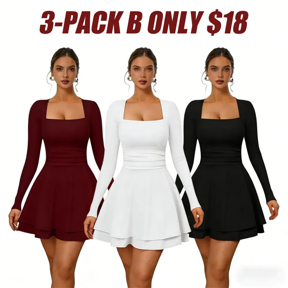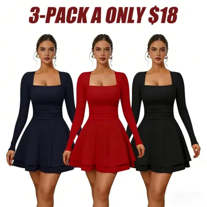 Stylish Square Neck and Long Sleeves: This women's slim-fit party dress features a modern square neckline that elegantly frames the collarbone, paired with stylish long sleeves for a sophisticated and trendy look – perfect for autumn and winter parties or cool evenings out.