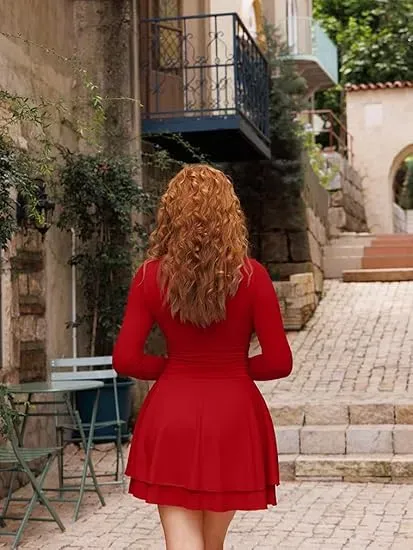 Material: This women's ruffle dress is made of a stretchy and comfortable double-layered soft fabric that is skin-friendly, lightweight, breathable, and elastic. The long-sleeved design makes it suitable for cocktail parties or going out.
