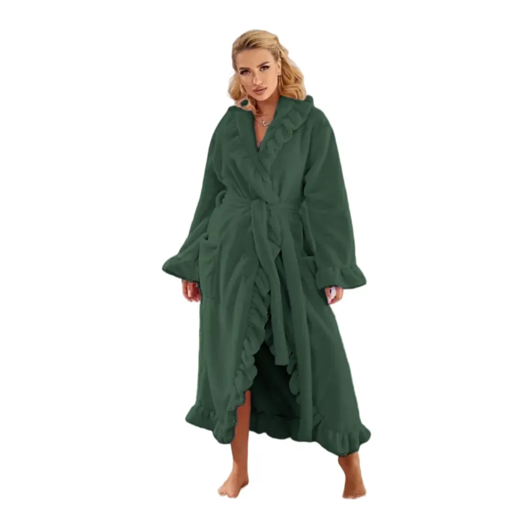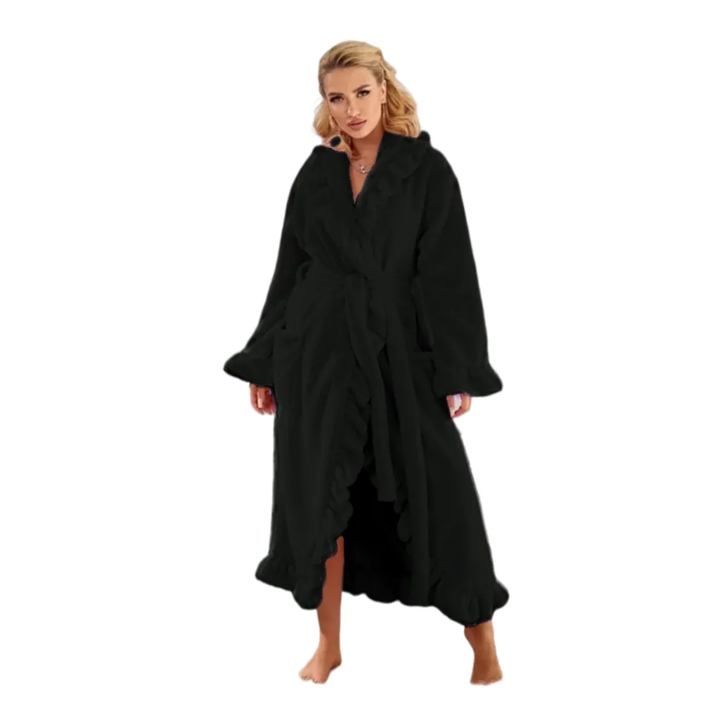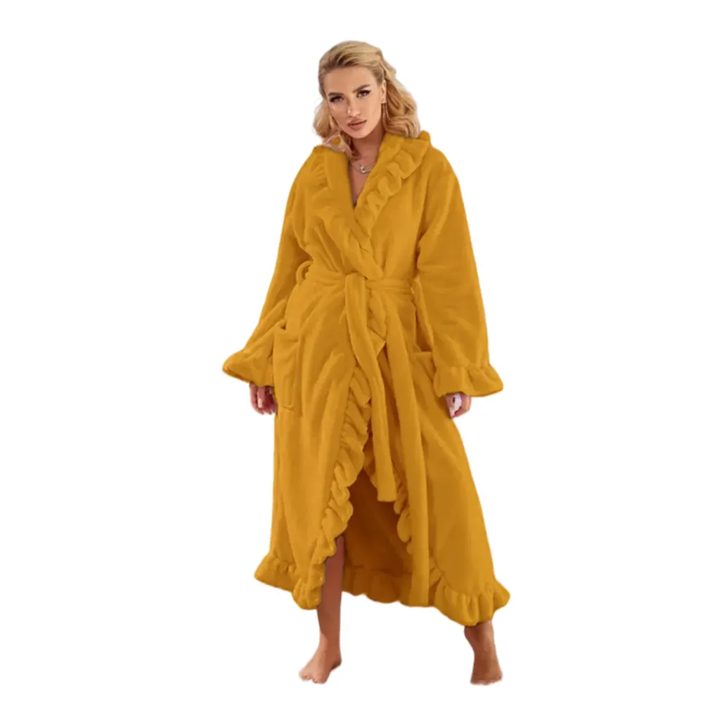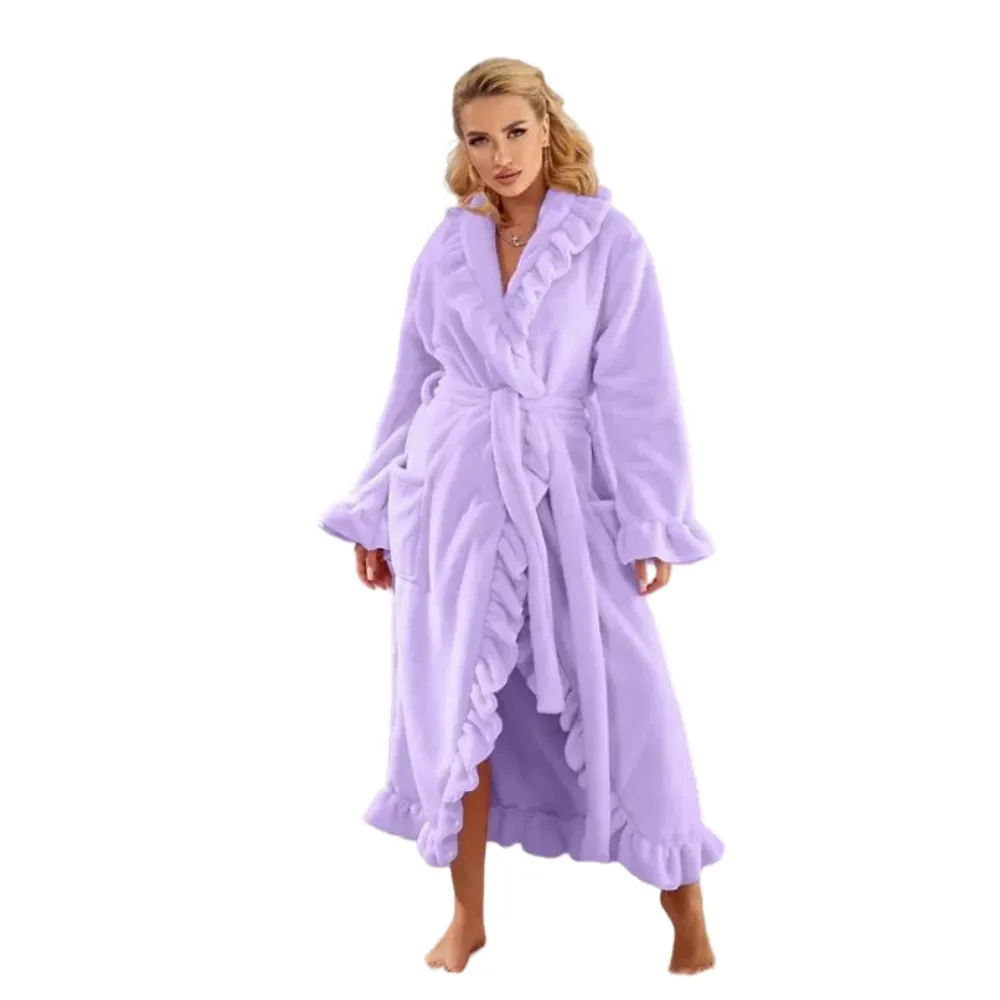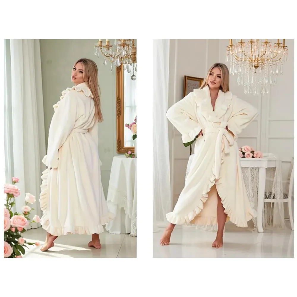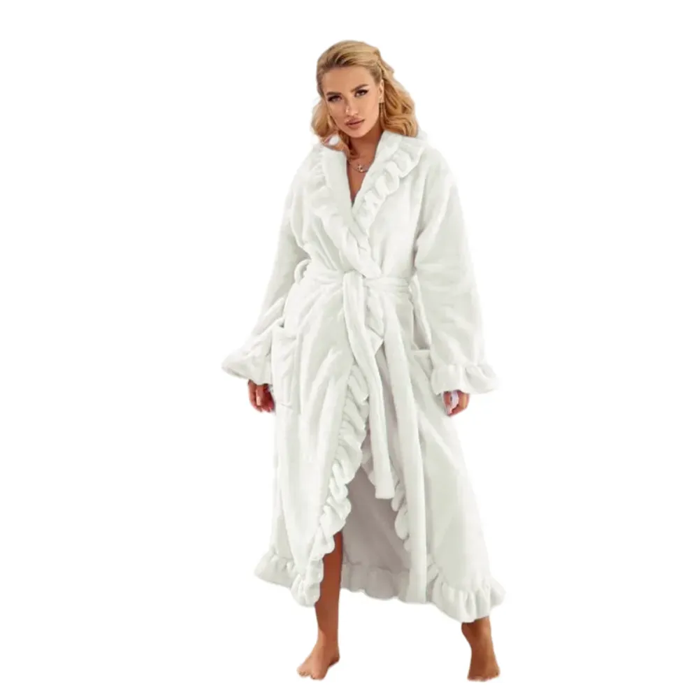 【Charming Ruffles】: Featuring delicate ruffle detailing at the hem, adding a touch of femininity to the traditional robe shape.