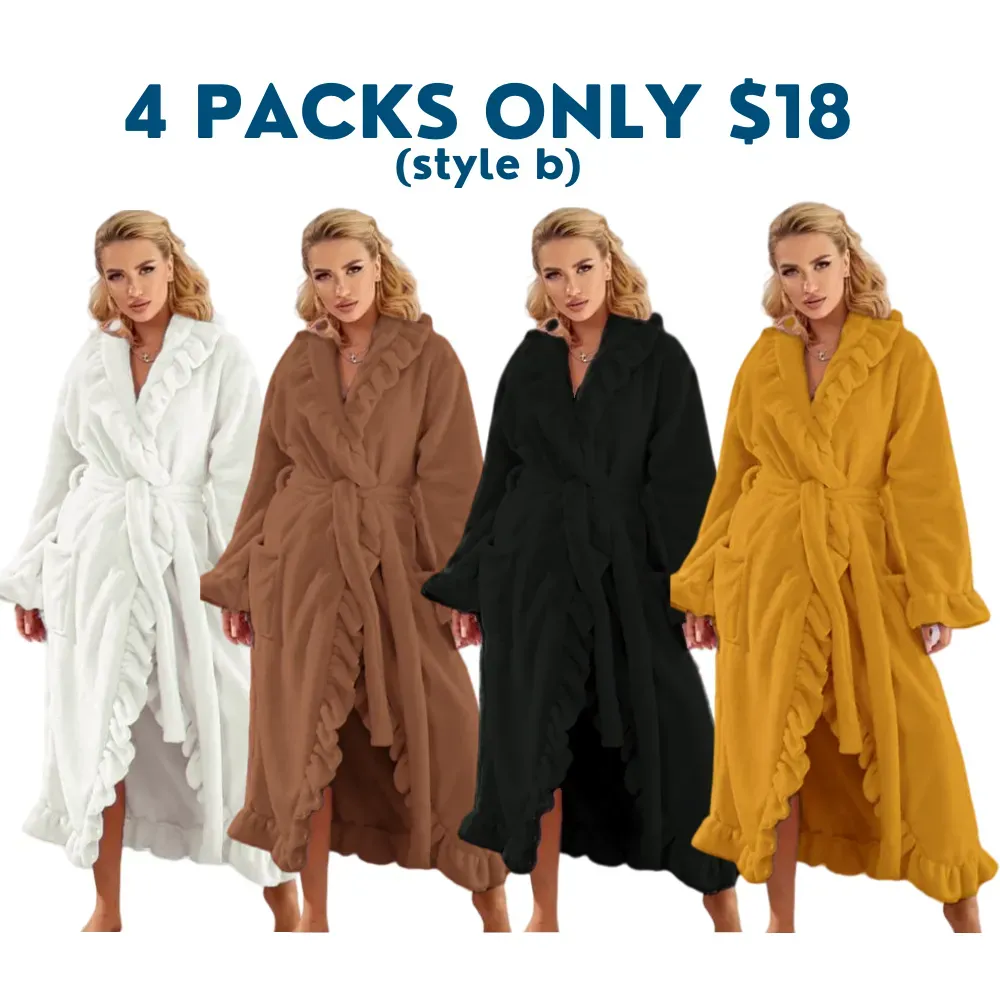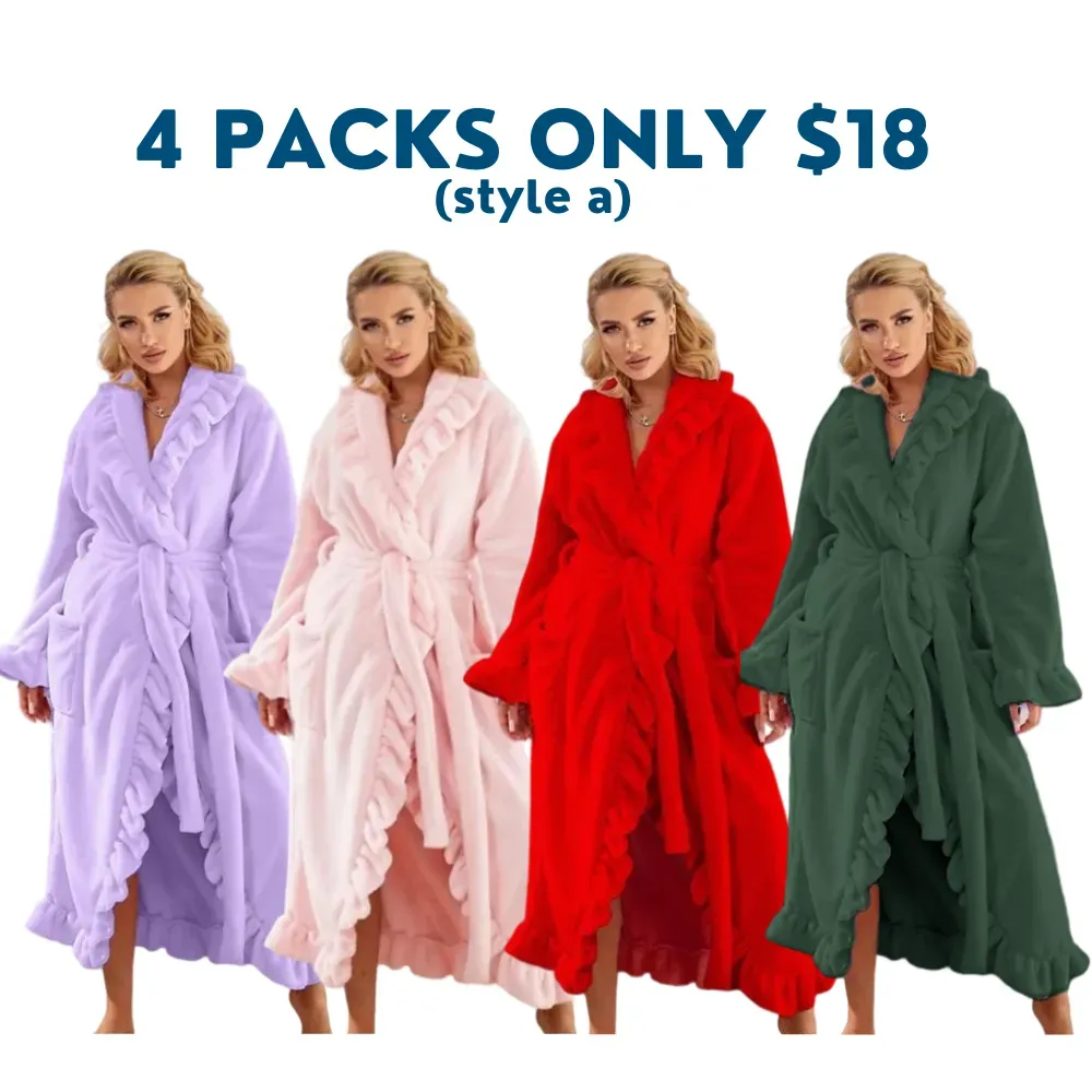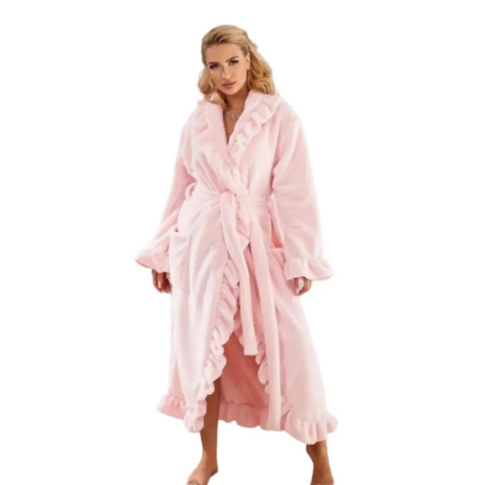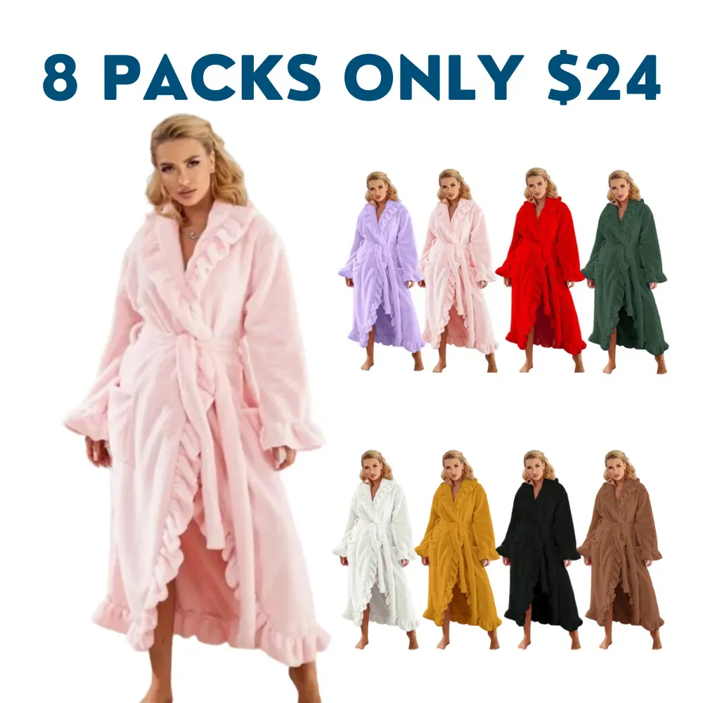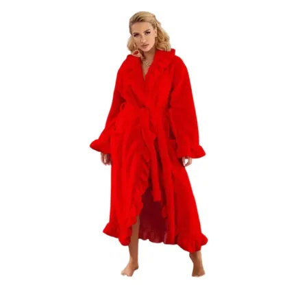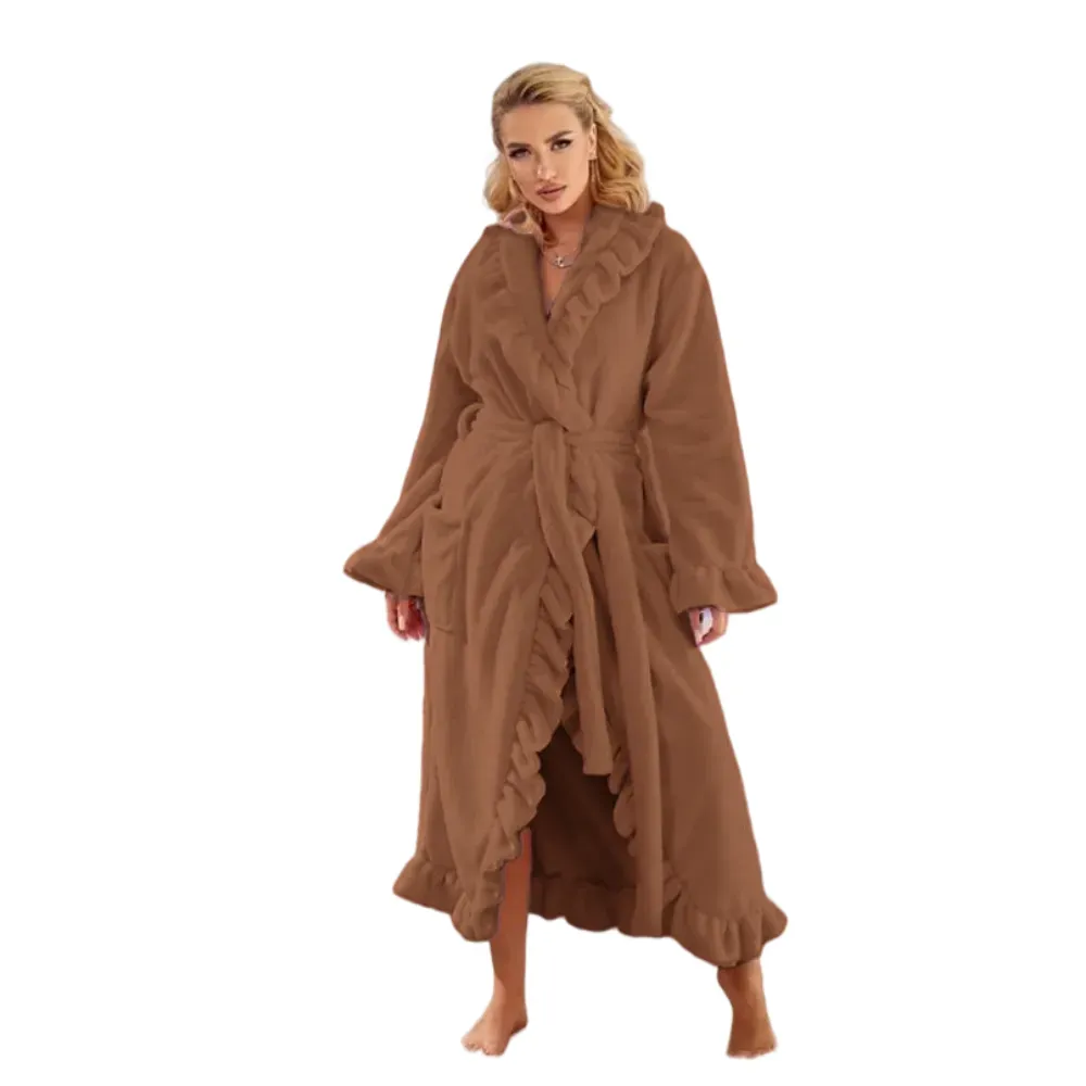 【Charming Ruffles】: Featuring delicate ruffle detailing at the hem, adding a touch of femininity to the traditional robe shape.