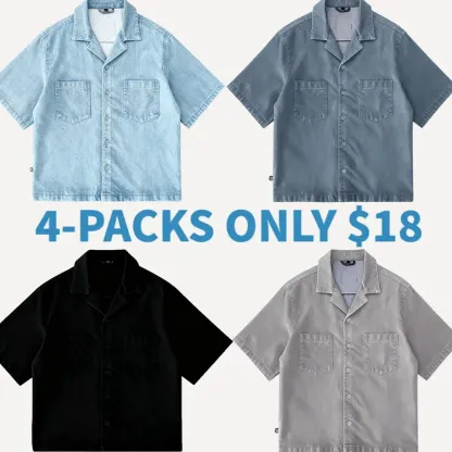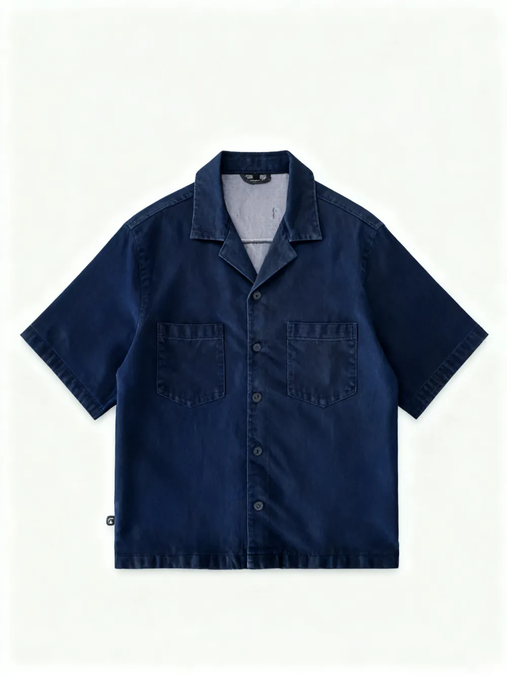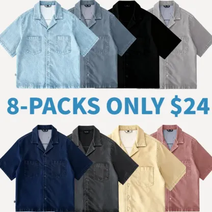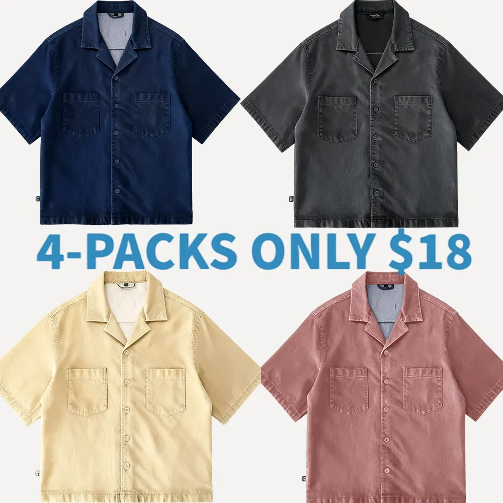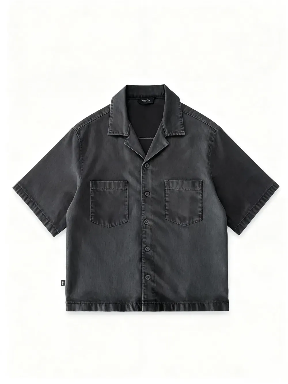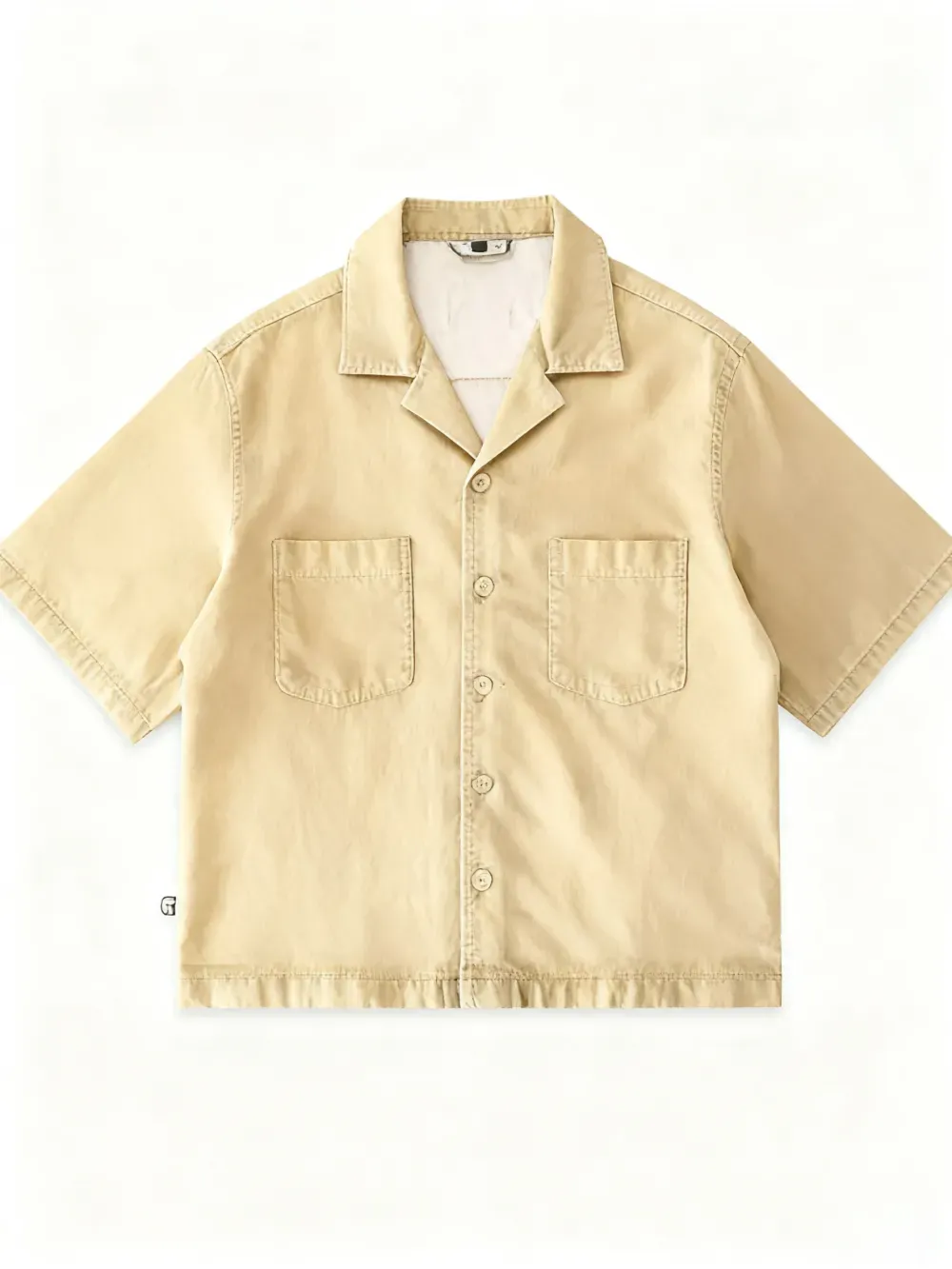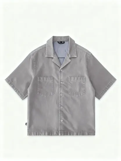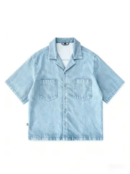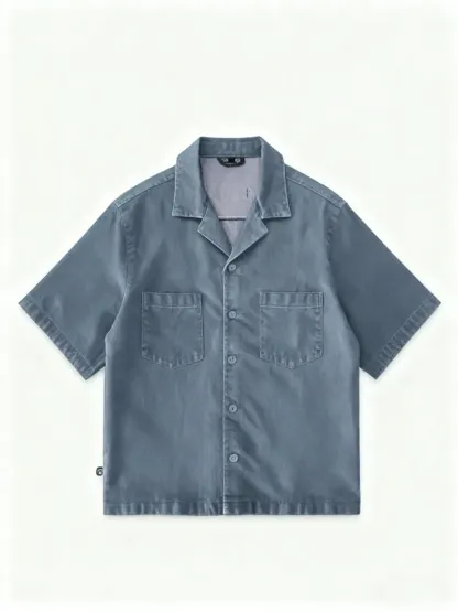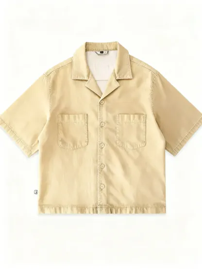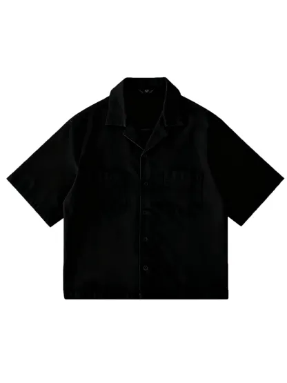 This short-sleeve top features a drop shoulder design and cropped fit, perfect for modern men. The open notch lapel-like collar adds a stylish touch.