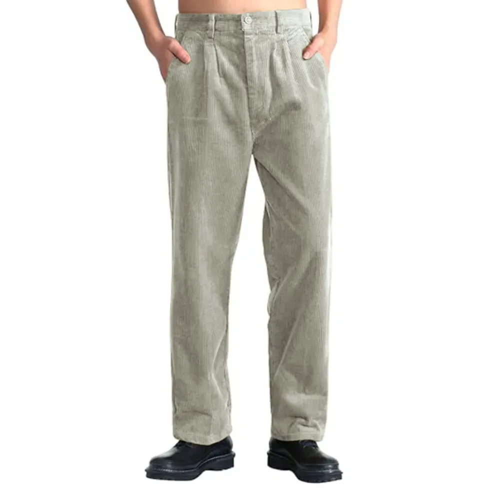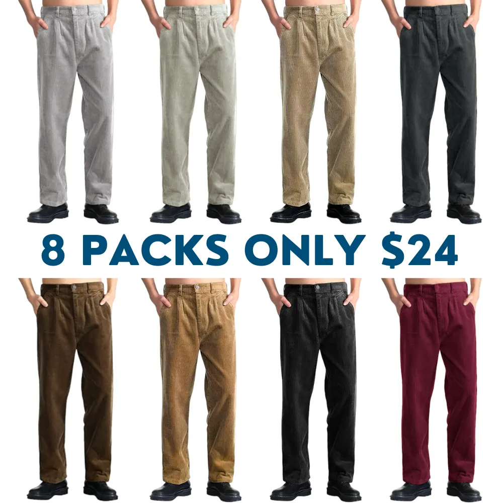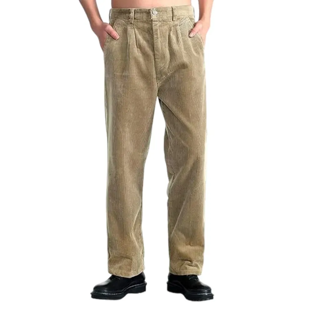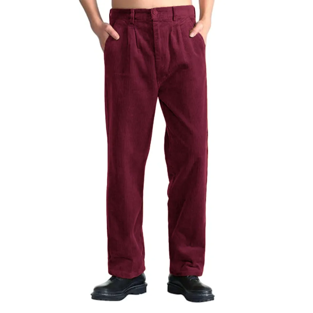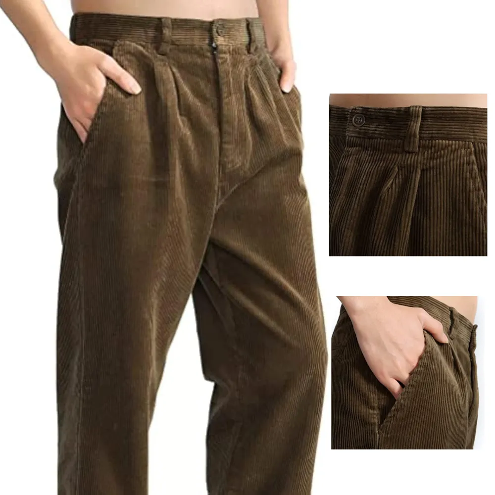 Men's Solid Color Button Fly Side Pocket Corduroy Carrot Pants