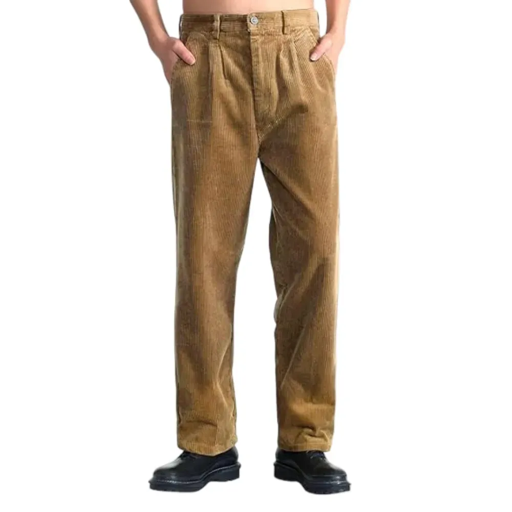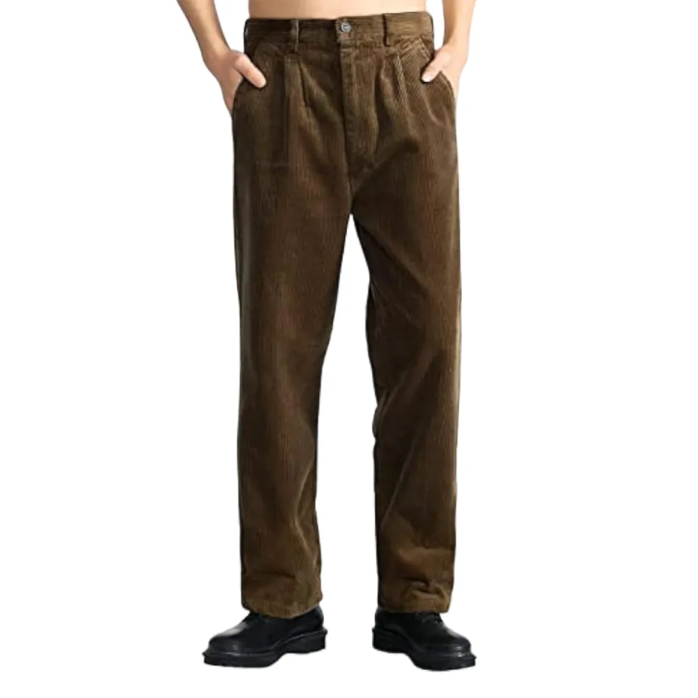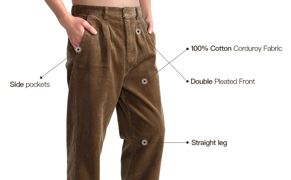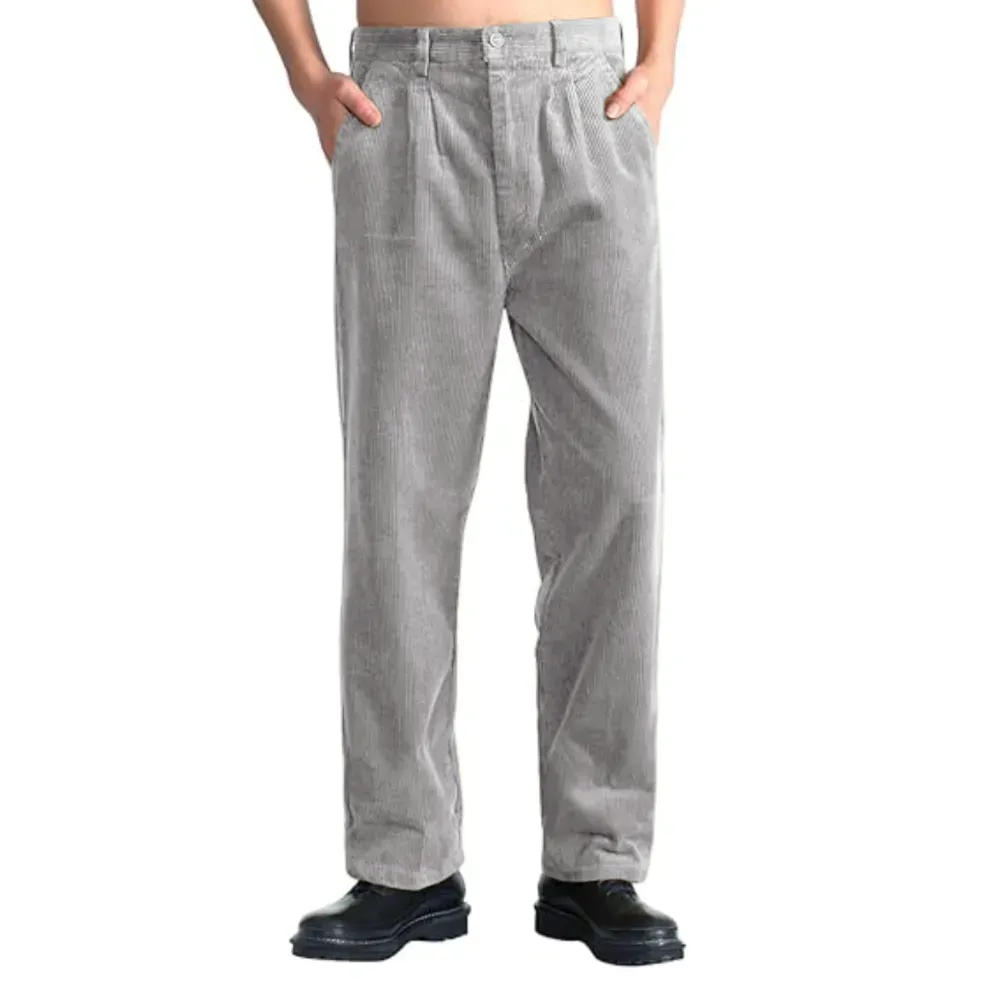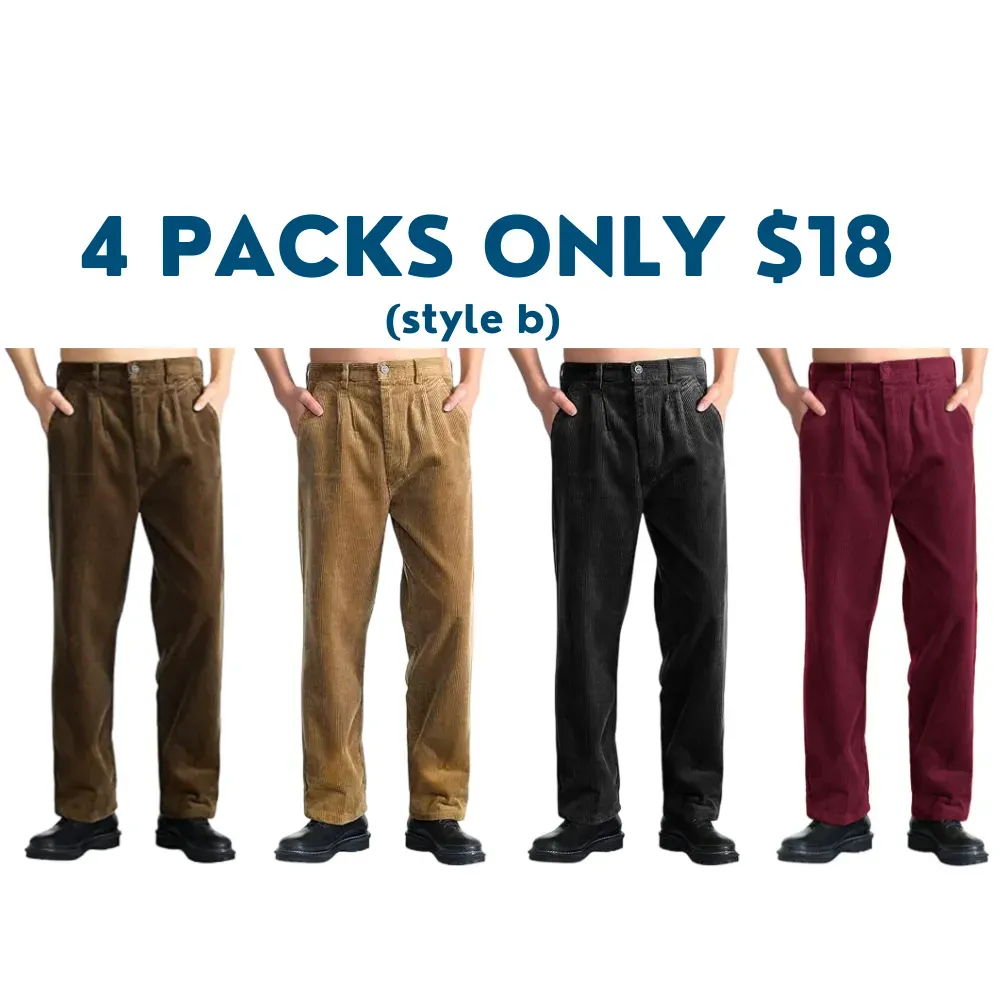 Men's Solid Color Button Fly Side Pocket Corduroy Carrot Pants