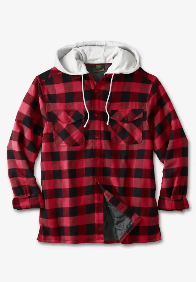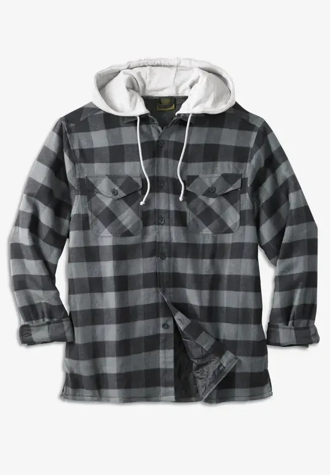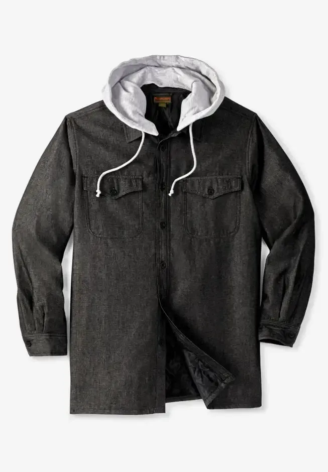 Easily transition into fall with this fleece shirt jacket that keeps the chill out without any bulk. Choose from brushed flannel or rugged denim. The removable drawstring fleece hood adds an extra layer of protection.