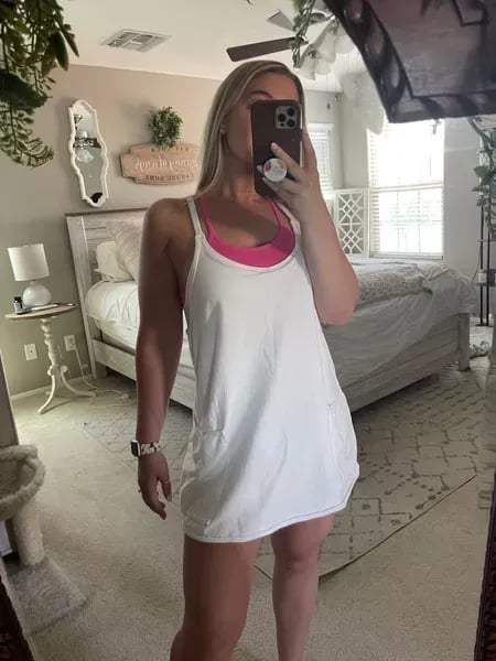 A Fun Addition To Your Wardrobe In This Summer! This soft dress is featured in a mini-length and lightweight fabrication with oversized patch pockets and built-in shorts.