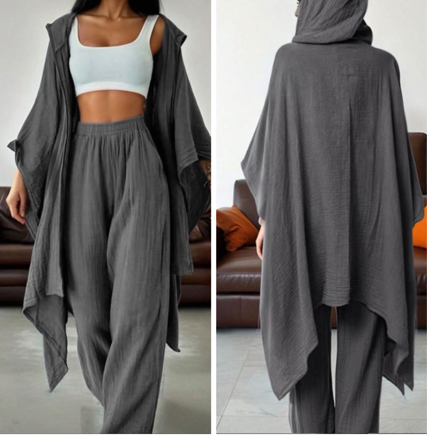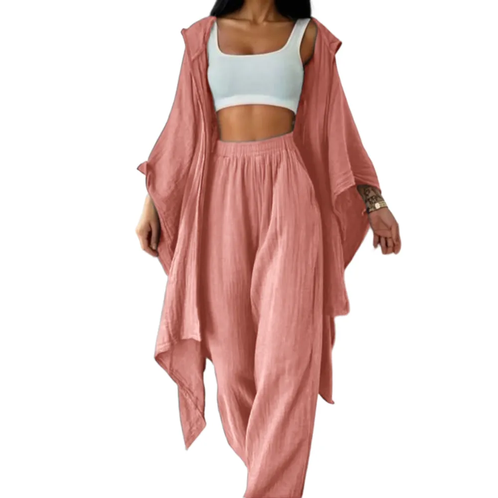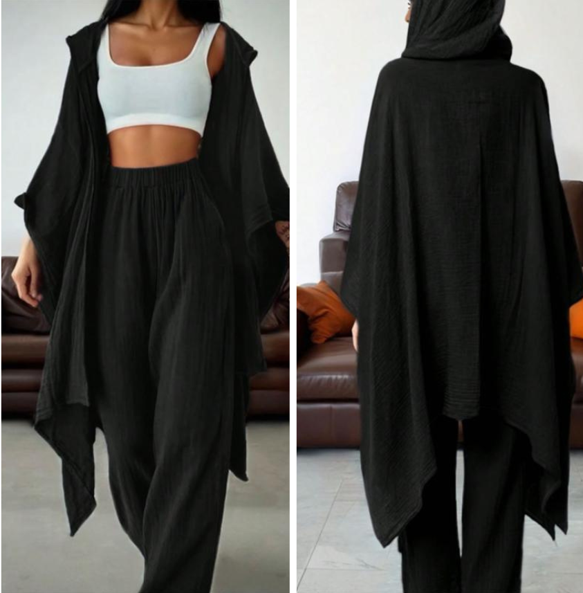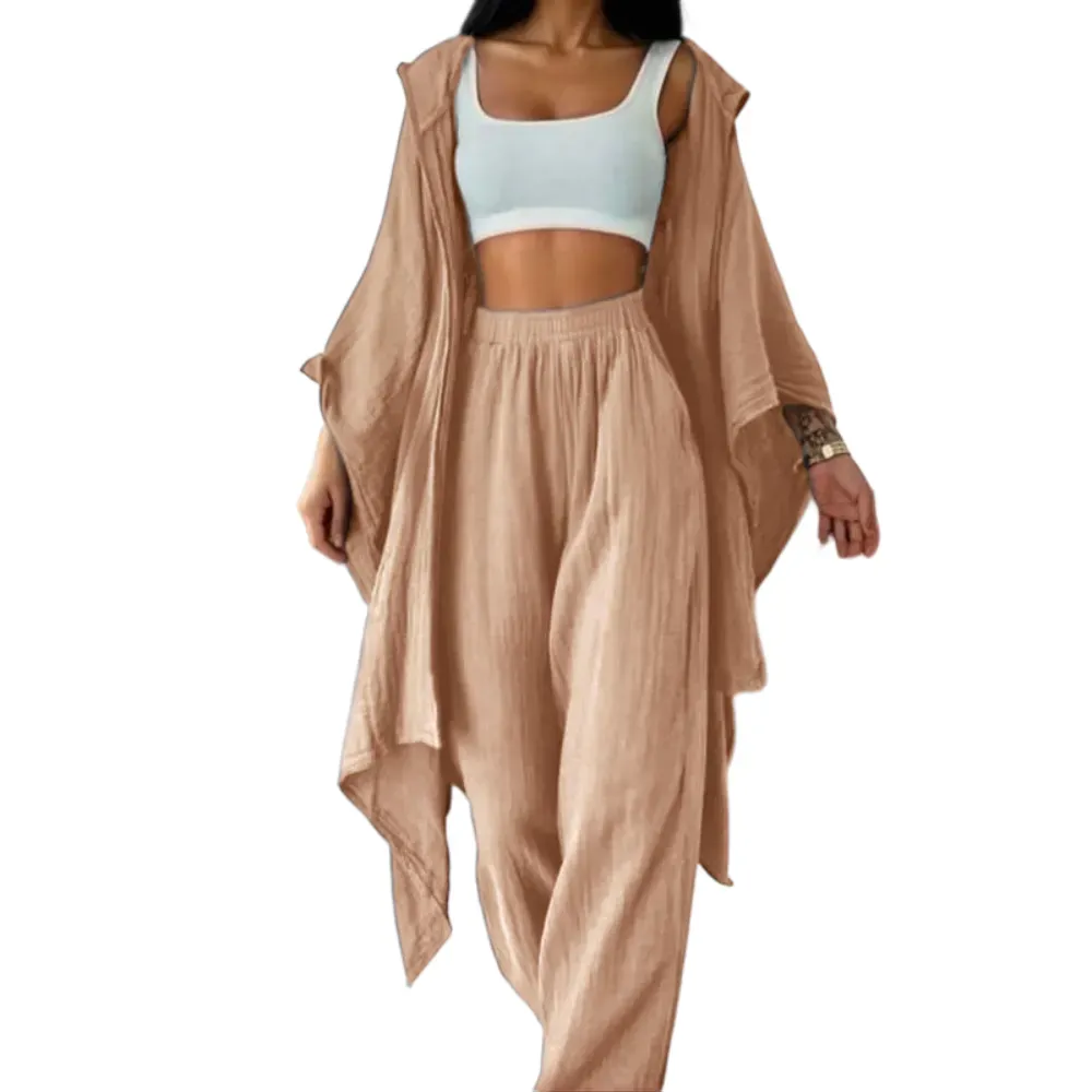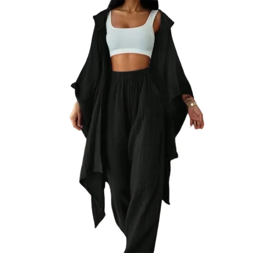 【Loose Cardigan】: Features a wide cardigan that drapes effortlessly, enhancing the overall fluidity and ease of movement.