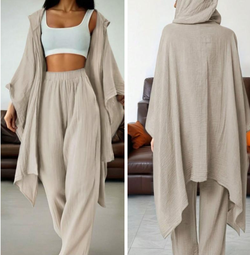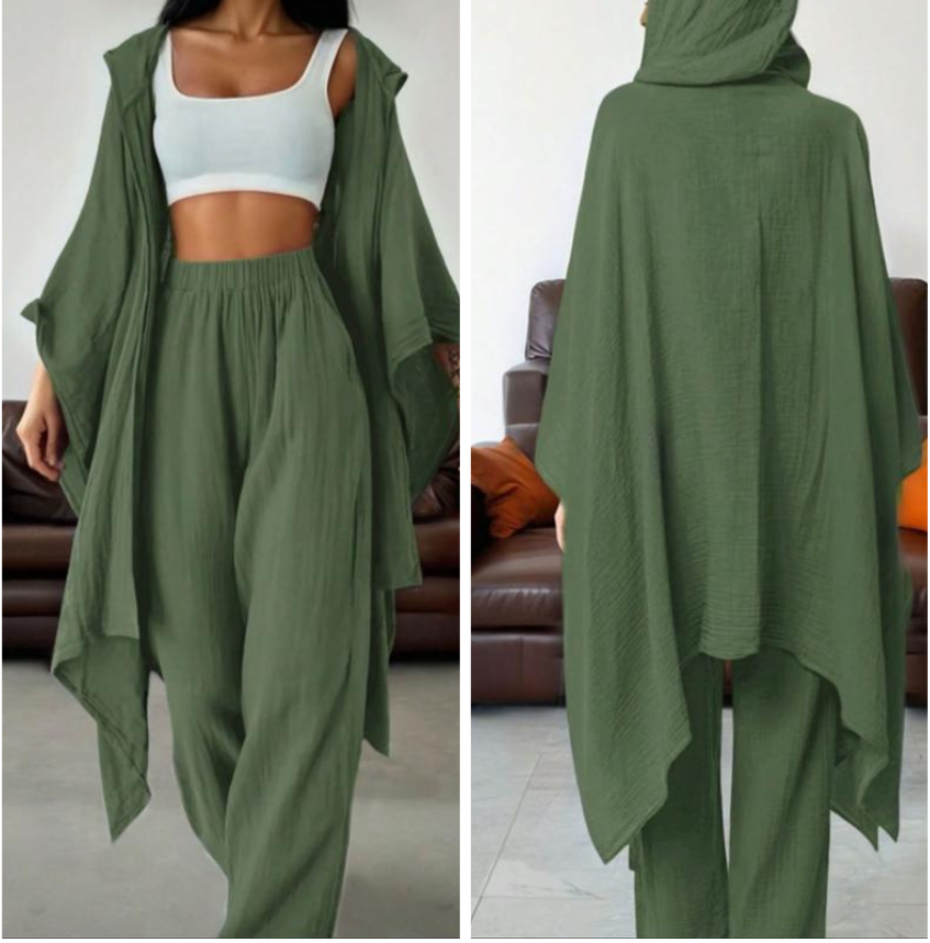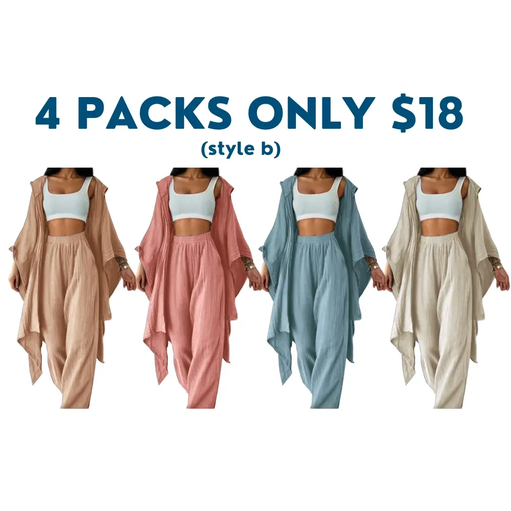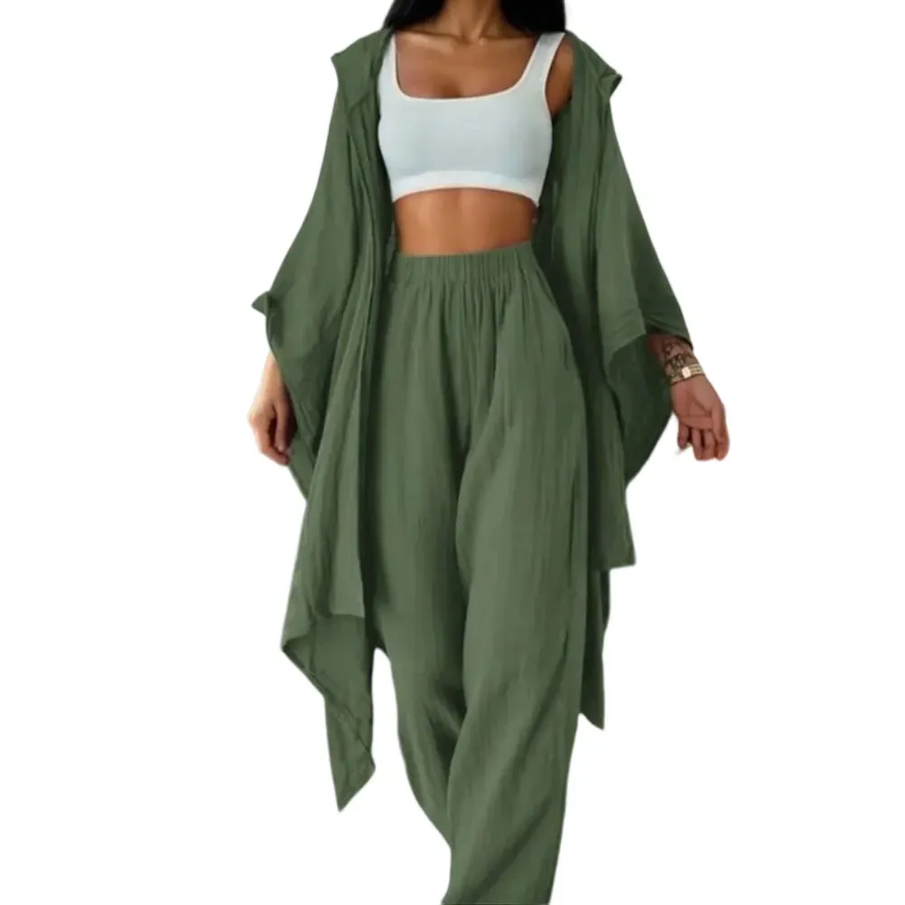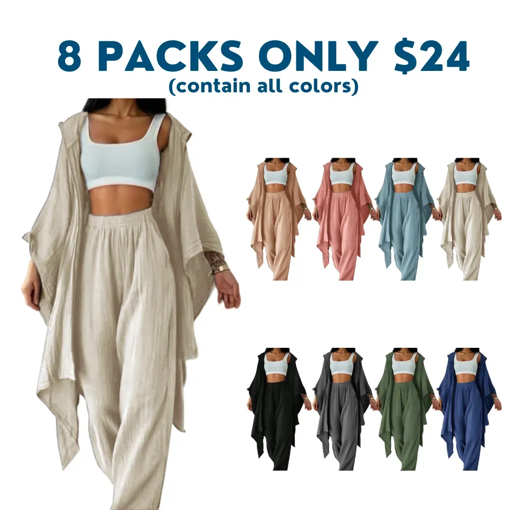 【Loose Cardigan】: Features a wide cardigan that drapes effortlessly, enhancing the overall fluidity and ease of movement.