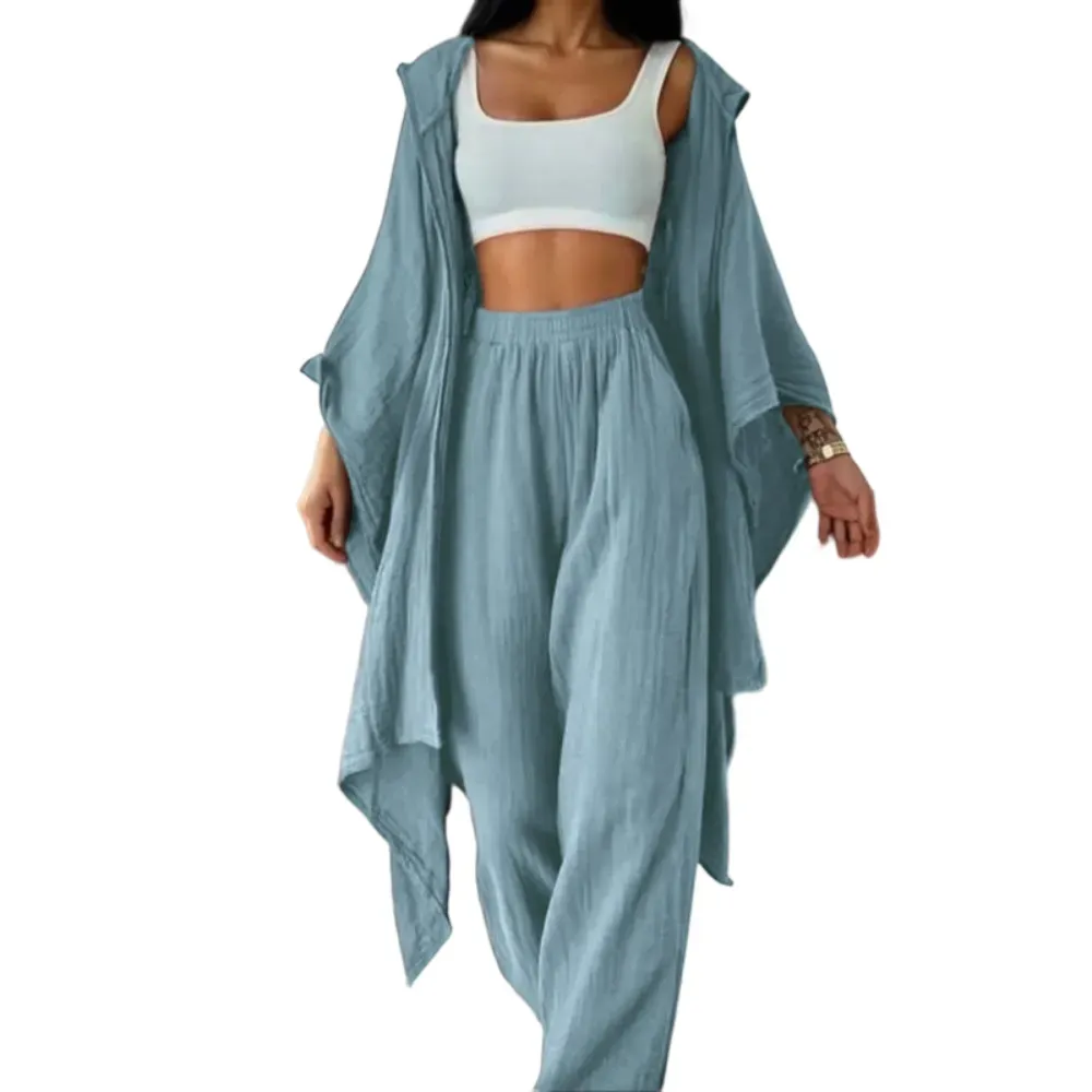 【Wide-Leg Trousers】: Incorporates wide-leg trousers, providing a relaxed fit that balances aesthetics with practicality.